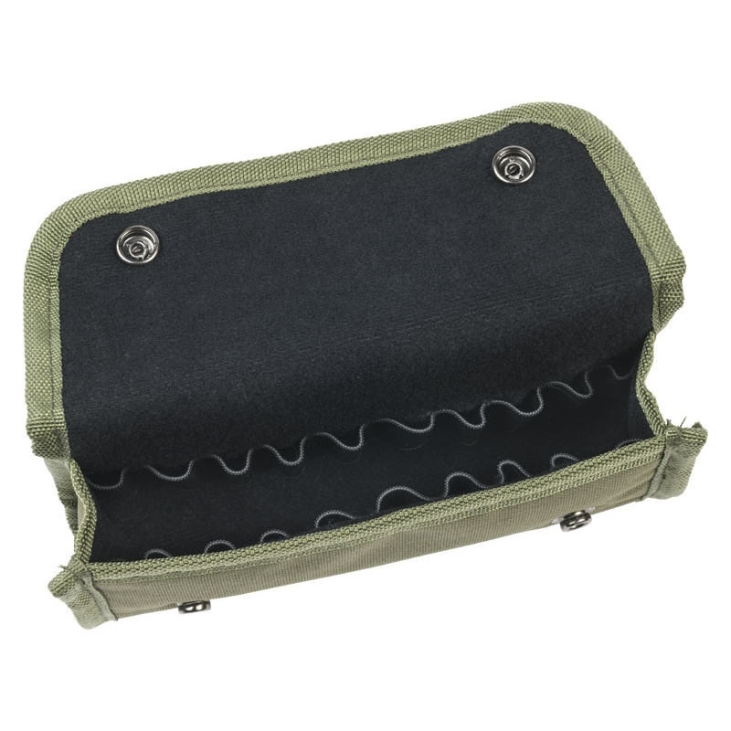 Pochette à rabat 100 % polyester avec fermeture par boutons pressions permettant de transporter à la ceinture 20 munitions de tous calibres rayés